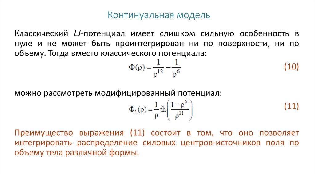 Континуальная модельУпомянутая выше модификация LJ-потенциала имеет следующий вид: