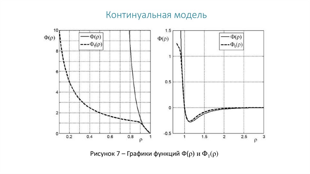 Континуальная модельРисунок 7 – Графики функций Ф(ρ) и Ф1(ρ)