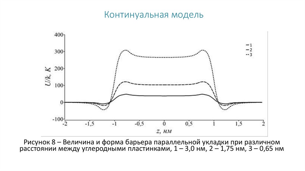 расстоянии между углеродными пластинками, 1 – 3,0 нм, 2 – 1,75 нм, 3 – 0,65 нм