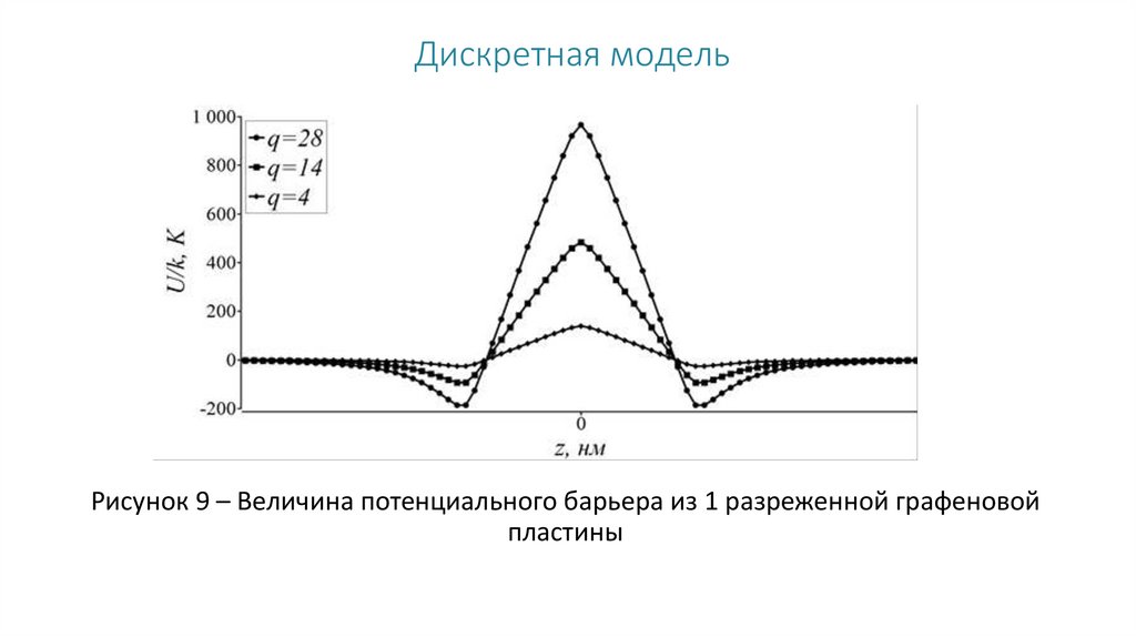 Дискретная модельРисунок 9 – Величина потенциального барьера из 1 разреженной графеновой