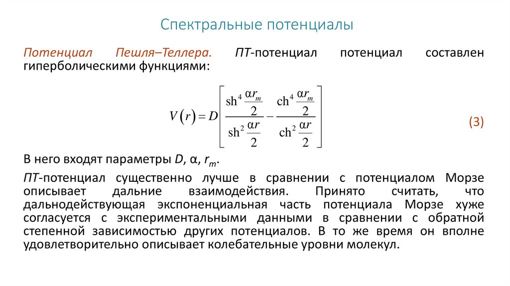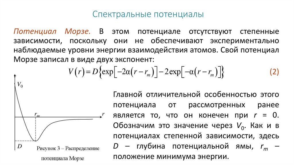 Спектральные потенциалыПотенциал Морзе. В этом потенциале отсутствуют степенные