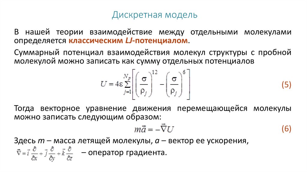Дискретная модельВ нашей теории взаимодействие между отдельными молекулами