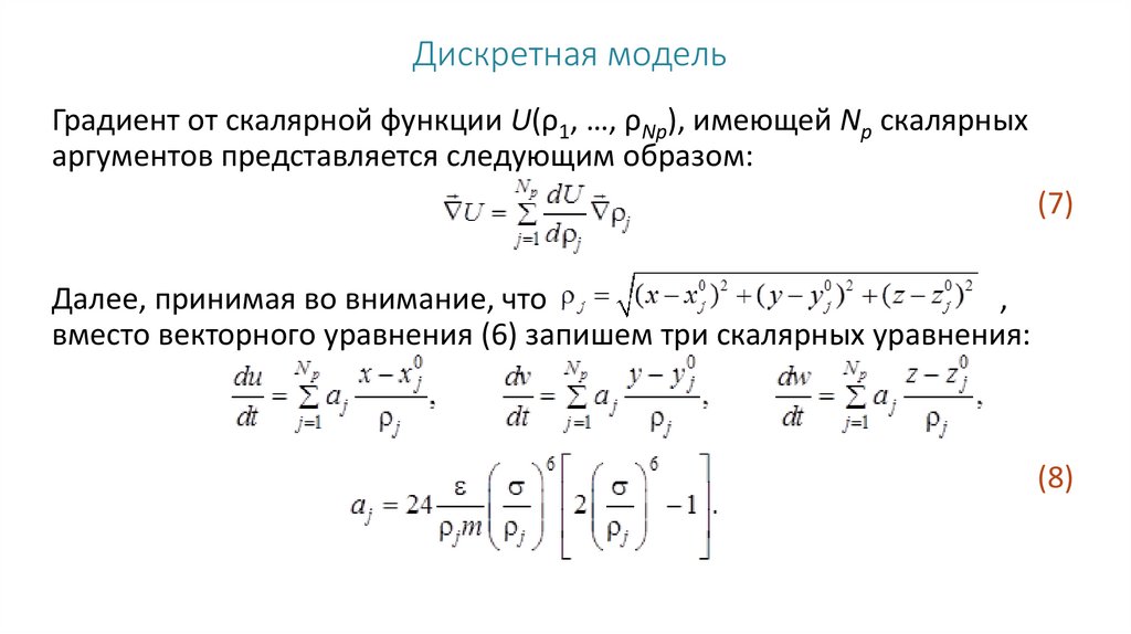 Дискретная модельГрадиент от скалярной функции U(ρ1, …, ρNp), имеющей Np скалярных