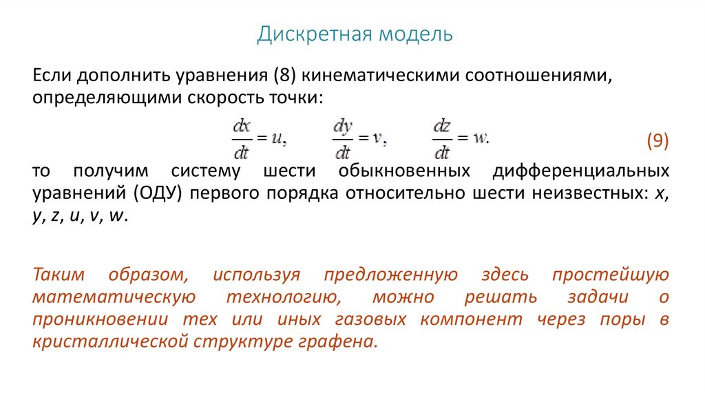 Дискретная модельЕсли дополнить уравнения (8) кинематическими соотношениями,