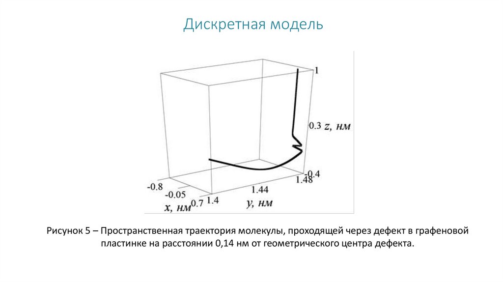 Дискретная модельРисунок 5 – Пространственная траектория молекулы, проходящей через дефект в графеновой