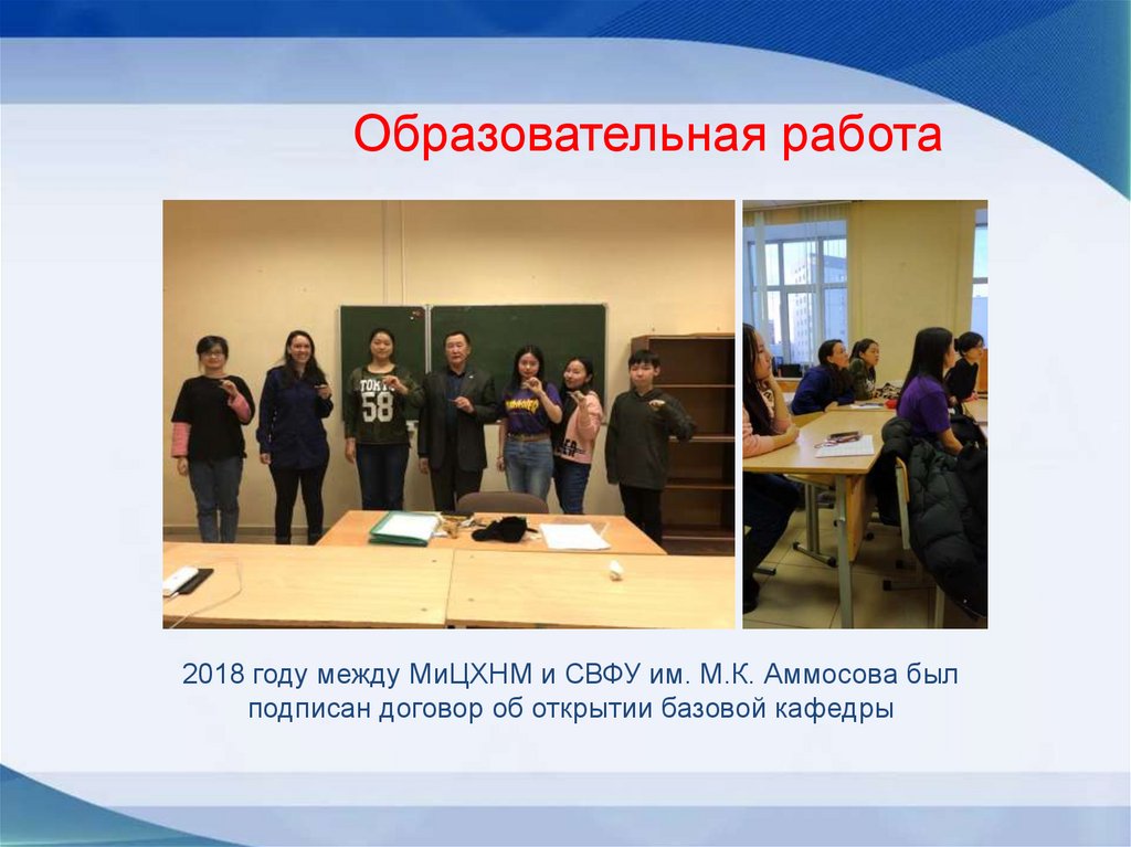Образовательная работа2018 году между МиЦХНМ и СВФУ им. М.К. Аммосова был
