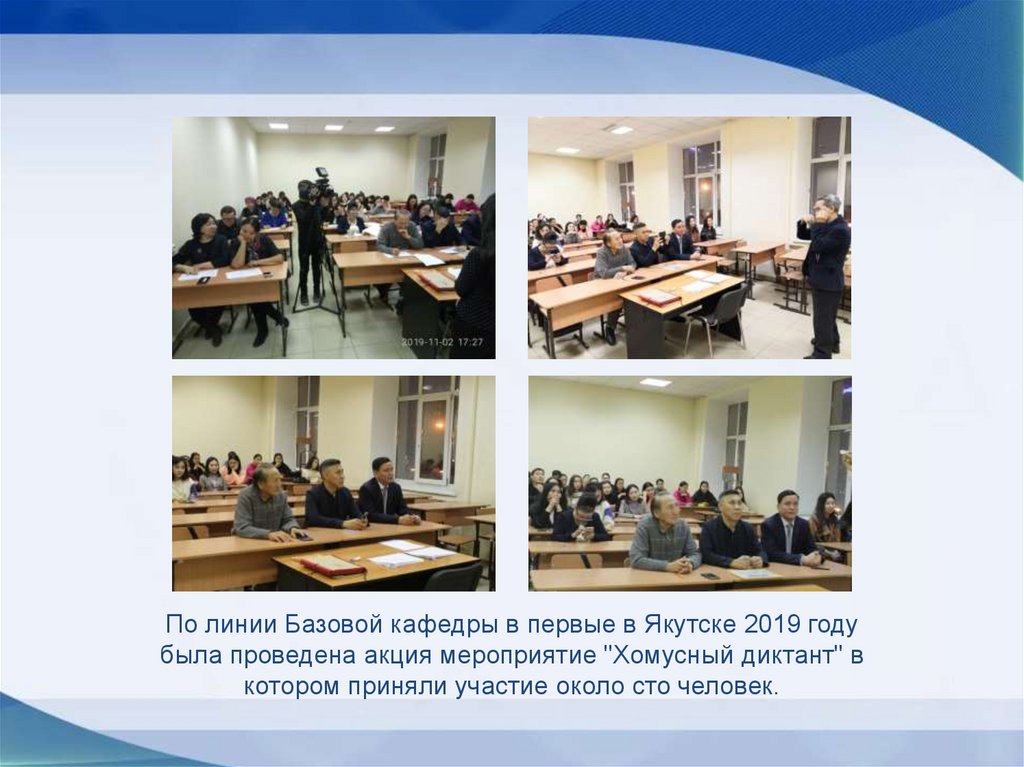 По линии Базовой кафедры в первые в Якутске 2019 годубыла проведена акция мероприятие "Хомусный диктант" в