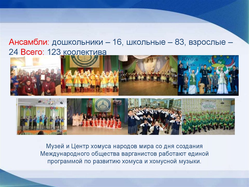 Ансамбли: дошкольники – 16, школьные – 83, взрослые –24 Всего: 123 коолектива