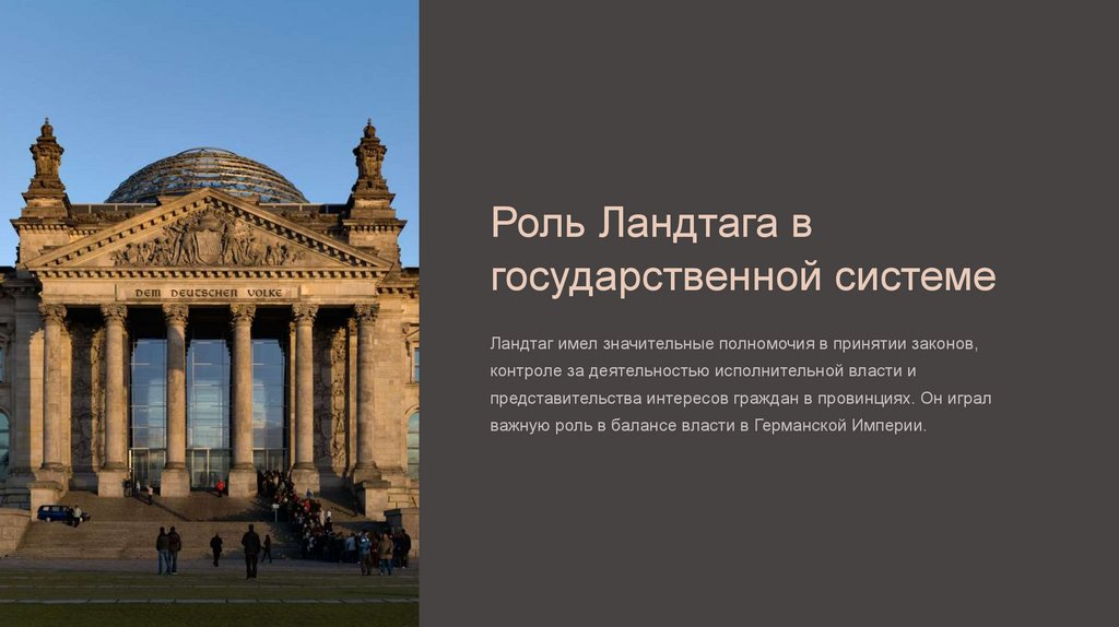 Заключение и основные выводыЛандтаг во времена Германской Империи был важной составляющей политической системы. Он
