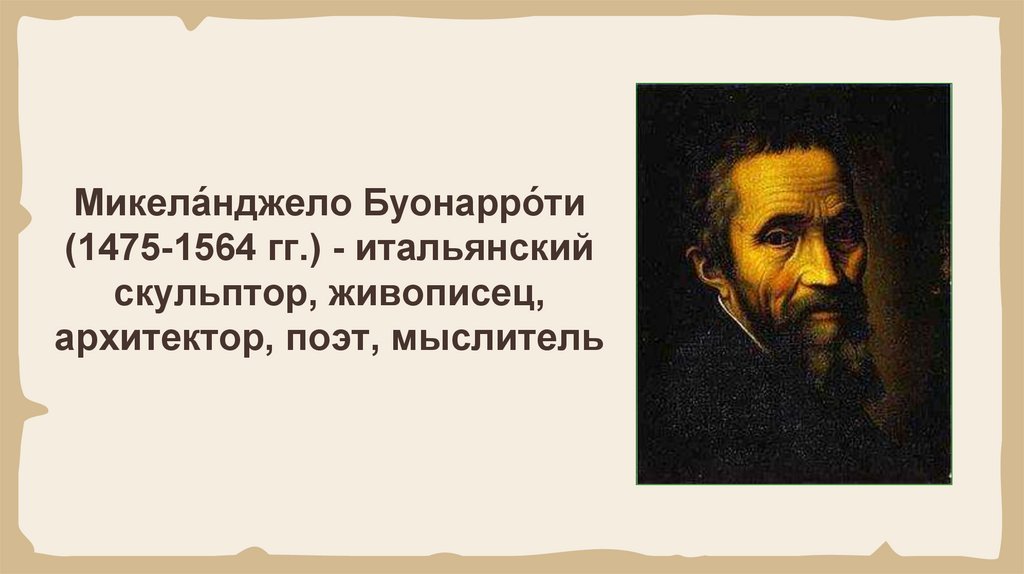 Микела́нджело Буонарро́ти(1475-1564 гг.) - итальянский