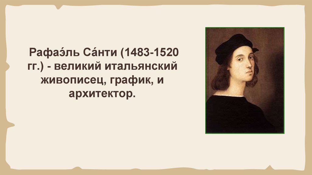Рафаэ́ль Са́нти (1483-1520гг.) - великий итальянский