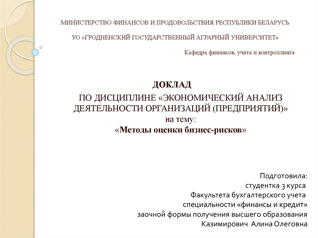 МИНИСТЕРСТВО ФИНАНСОВ И ПРОДОВОЛЬСТВИЯ РЕСПУБЛИКИ БЕЛАРУСЬУО «ГРОДНЕНСКИЙ ГОСУДАРСТВЕННЫЙ АГРАРНЫЙ УНИВЕРСИТЕТ»