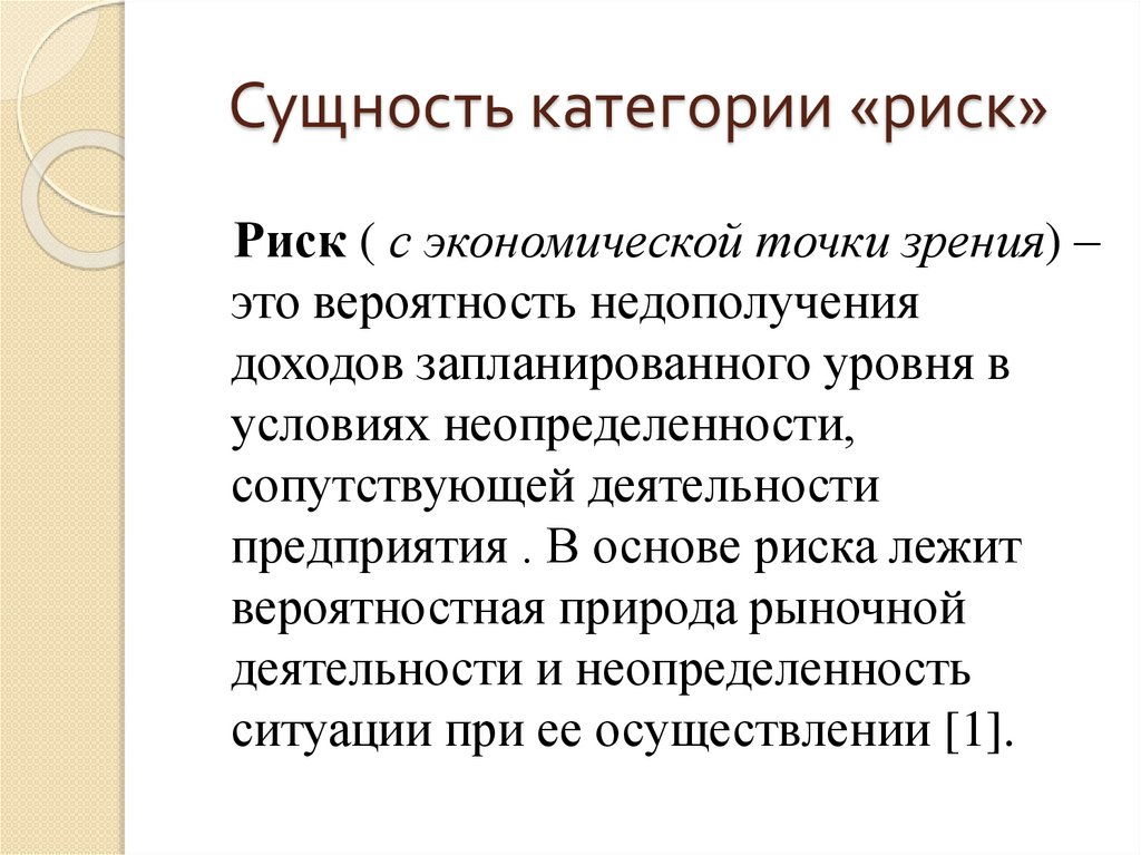 Сущность категории «риск»Риск ( с экономической точки зрения) –