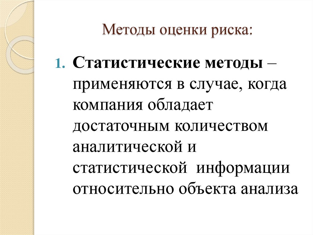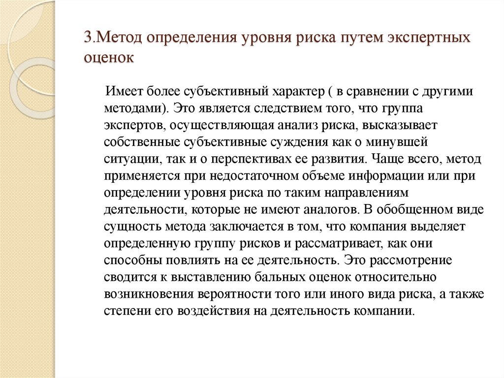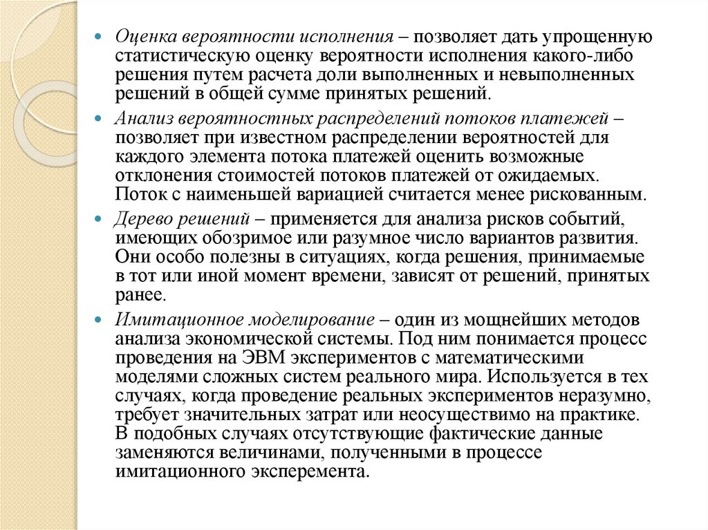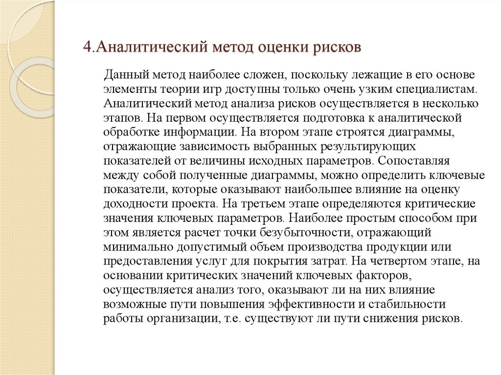 4.Аналитический метод оценки рисковДанный метод наиболее сложен, поскольку лежащие в его основе