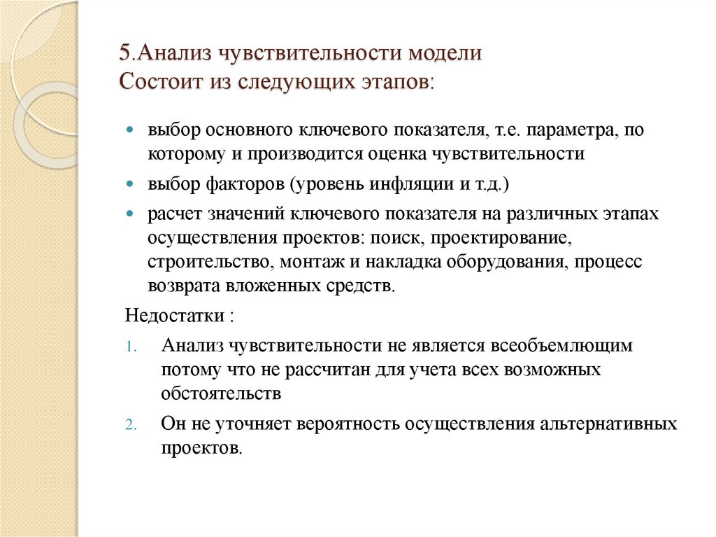 5.Анализ чувствительности моделиСостоит из следующих этапов: