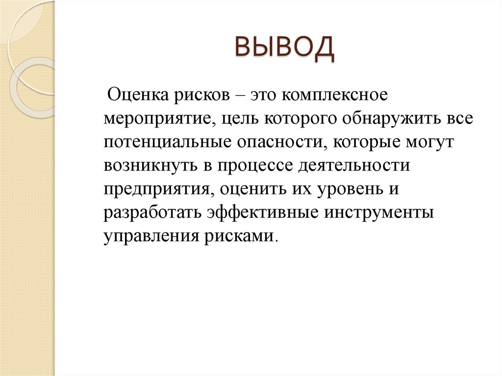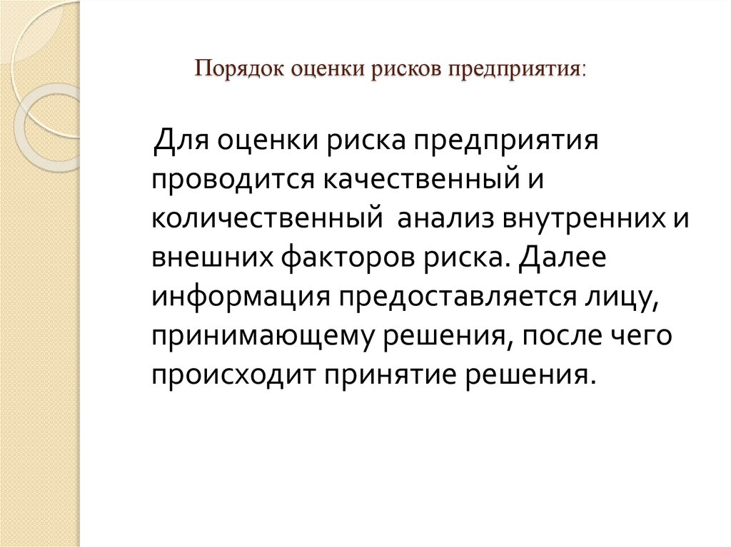 Порядок оценки рисков предприятия:Для оценки риска предприятия