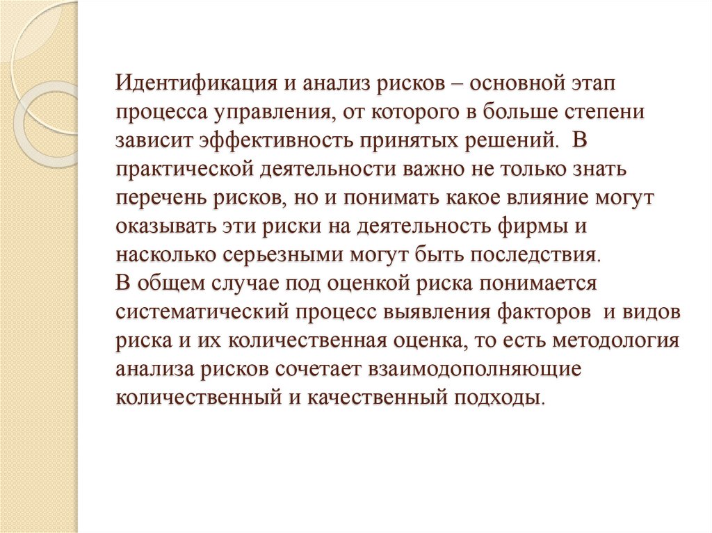 Идентификация и анализ рисков – основной этаппроцесса управления, от которого в больше степени