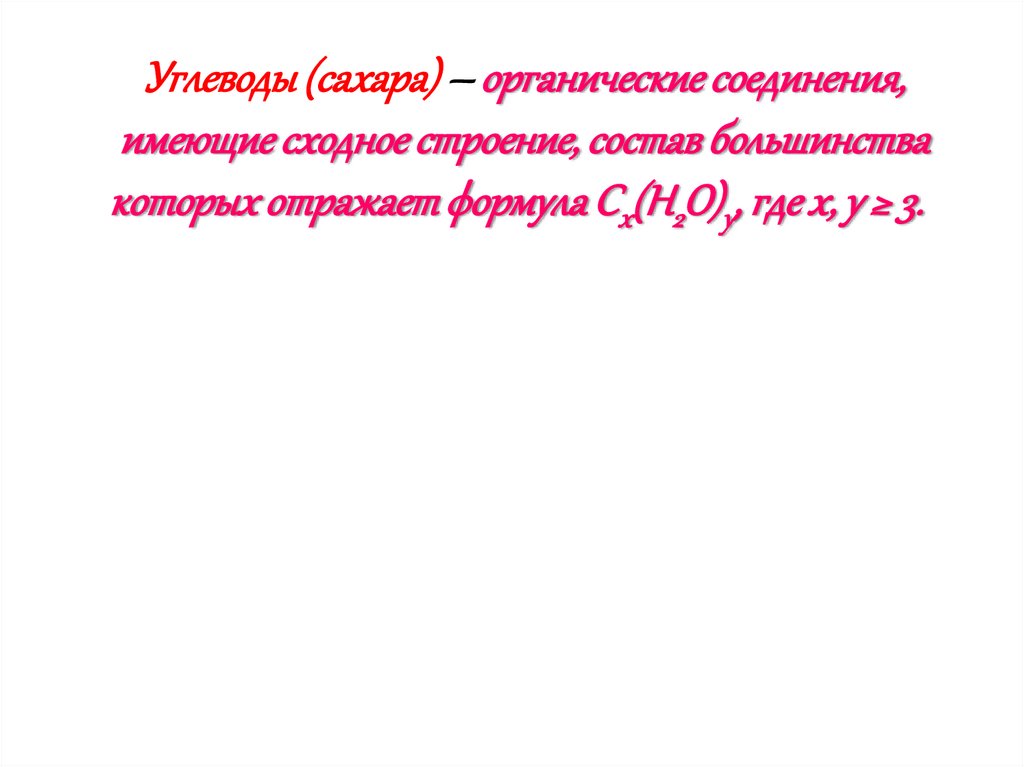 Углеводы (сахара) – органические соединения,имеющие сходное строение, состав большинства
