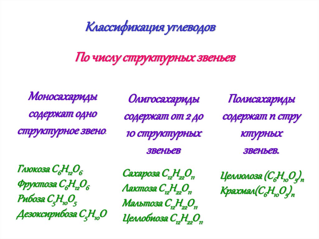 Классификация углеводовПо числу структурных звеньев