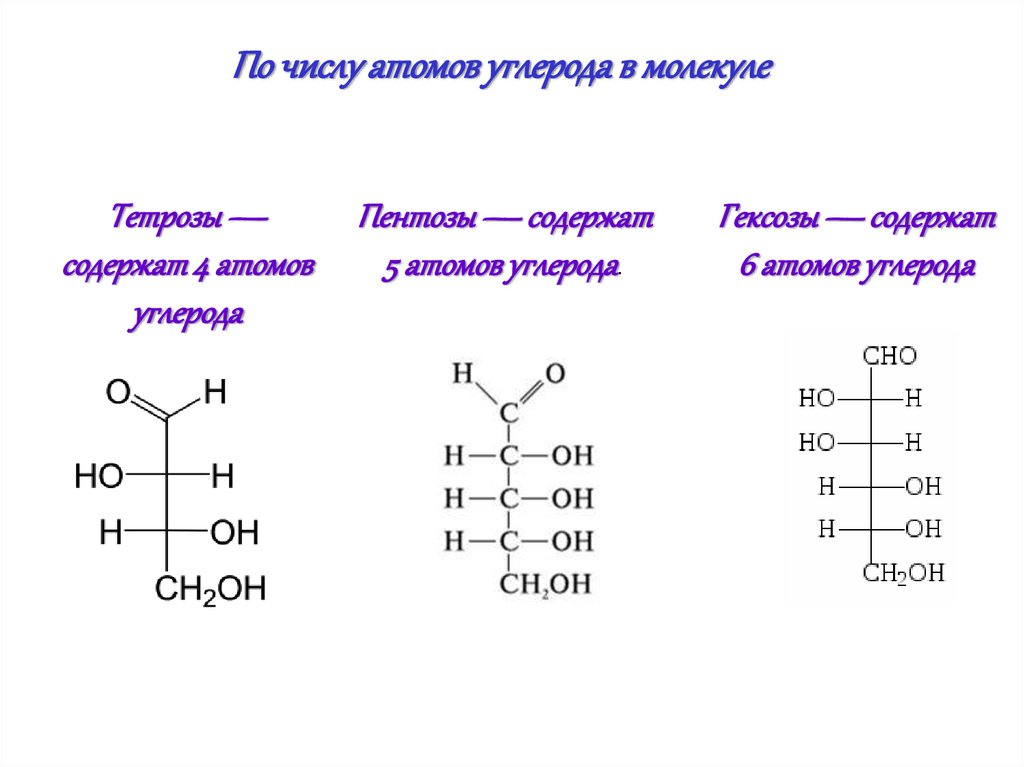 По числу атомов углерода в молекулеТетрозы —