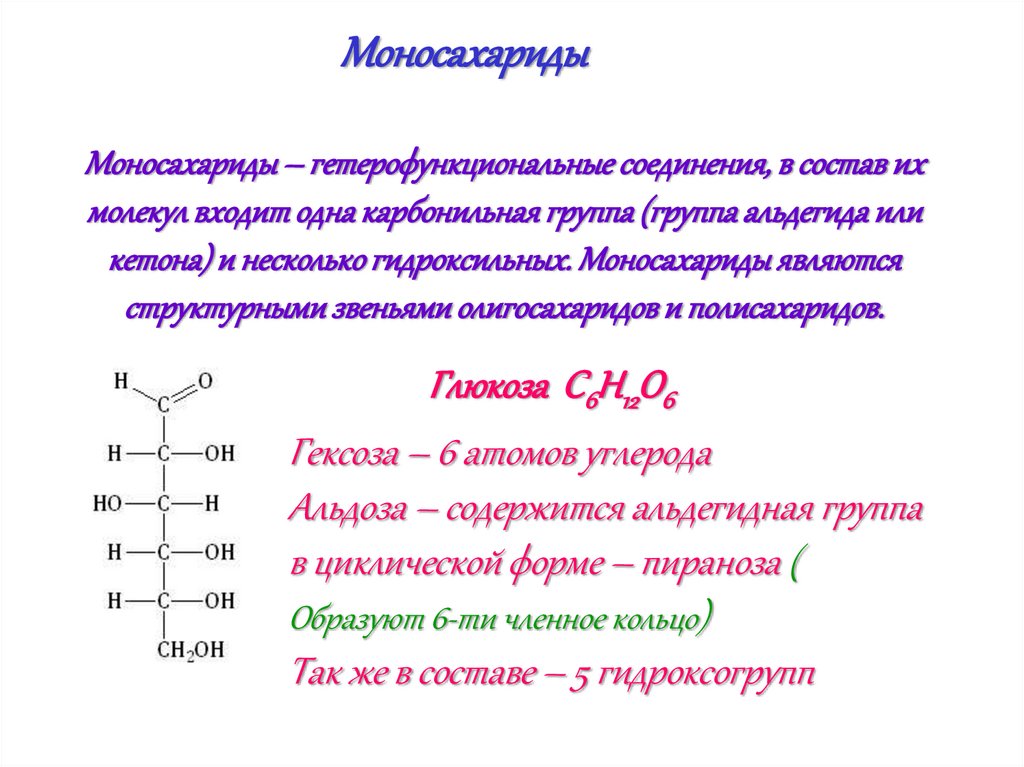 кетона) и несколько гидроксильных. Моносахариды являются