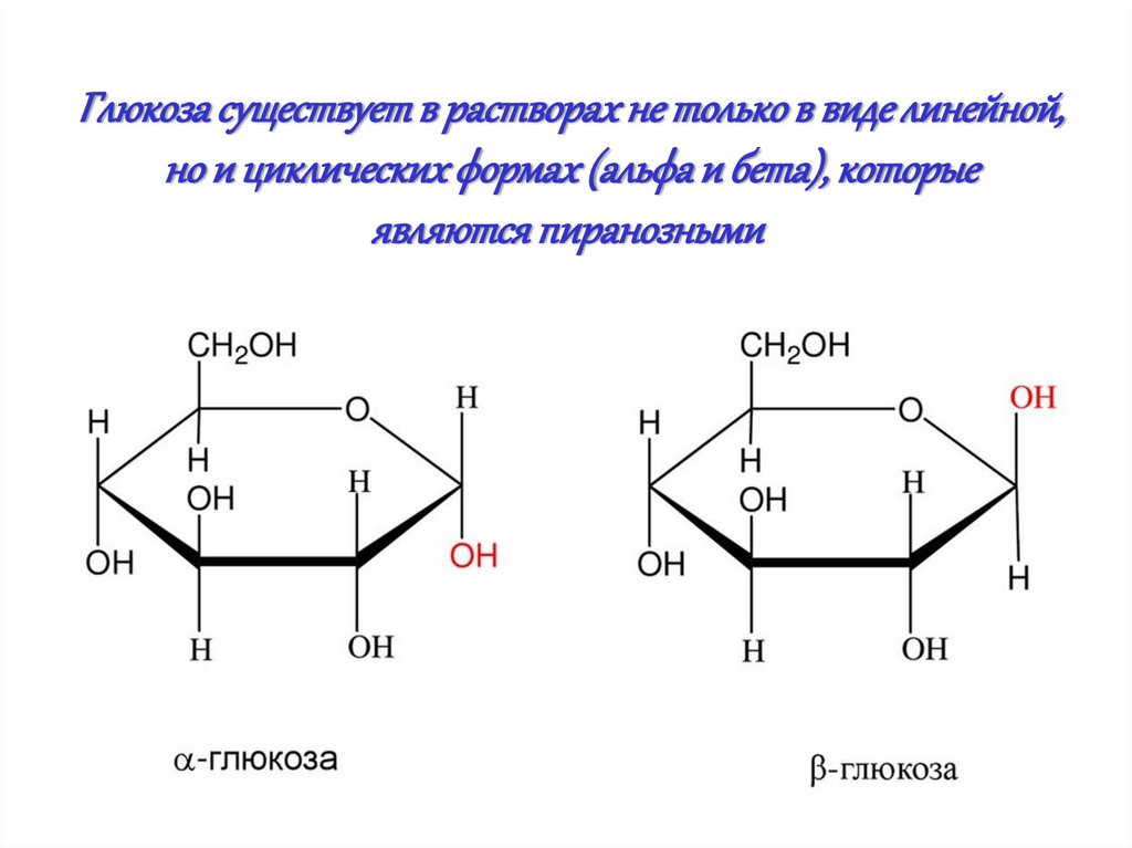 Глюкоза существует в растворах не только в виде линейной,но и циклических формах (альфа и бета), которые