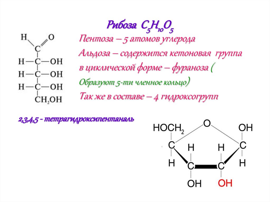 Рибоза C5H10O5Пентоза – 5 атомов углерода