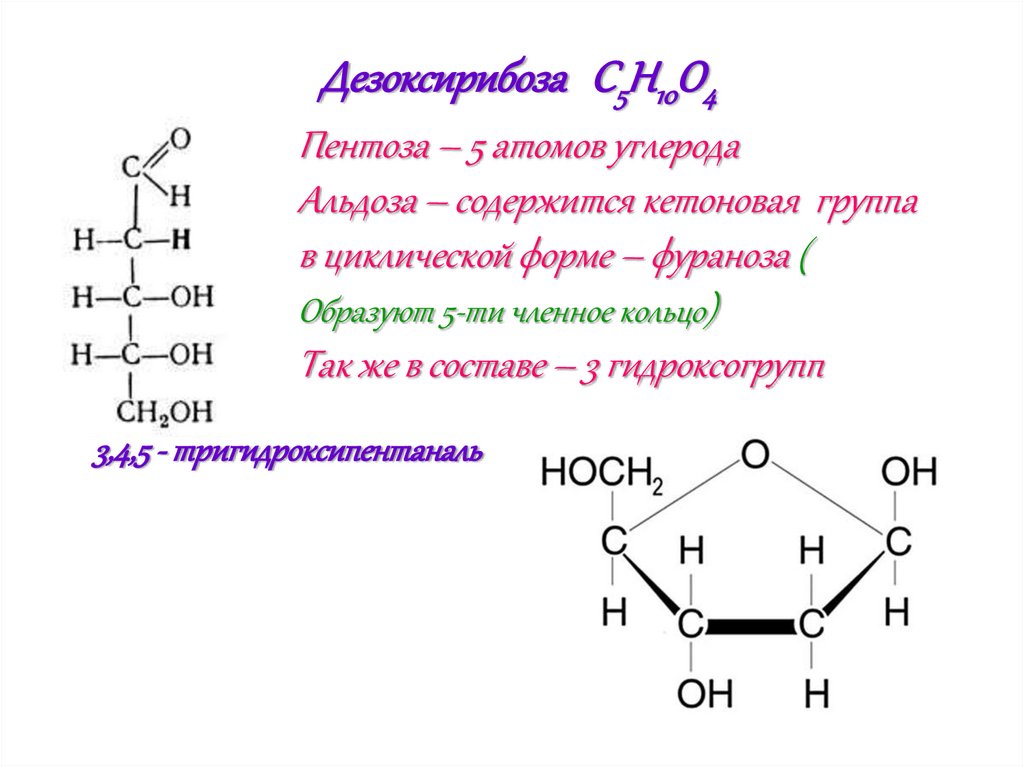 Дезоксирибоза C5H10O4Пентоза – 5 атомов углерода
