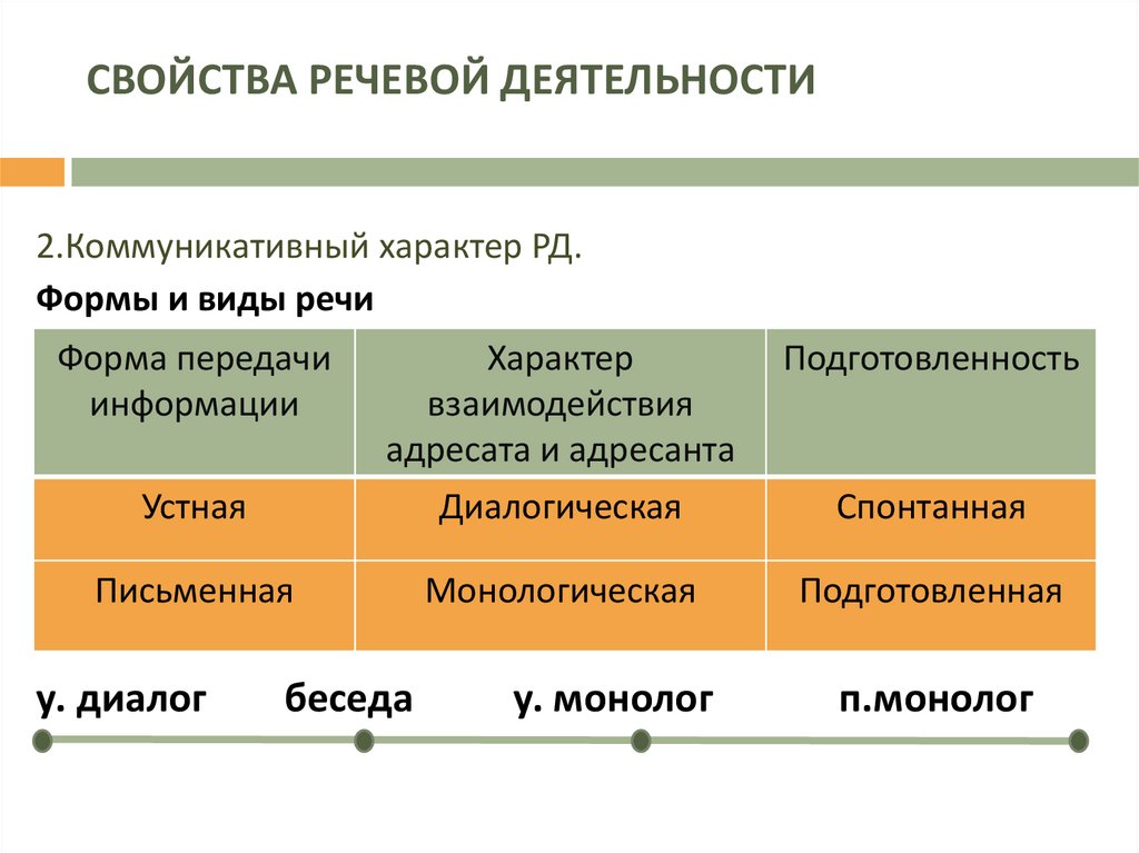 СВОЙСТВА РЕЧЕВОЙ ДЕЯТЕЛЬНОСТИ2.Коммуникативный характер РД.