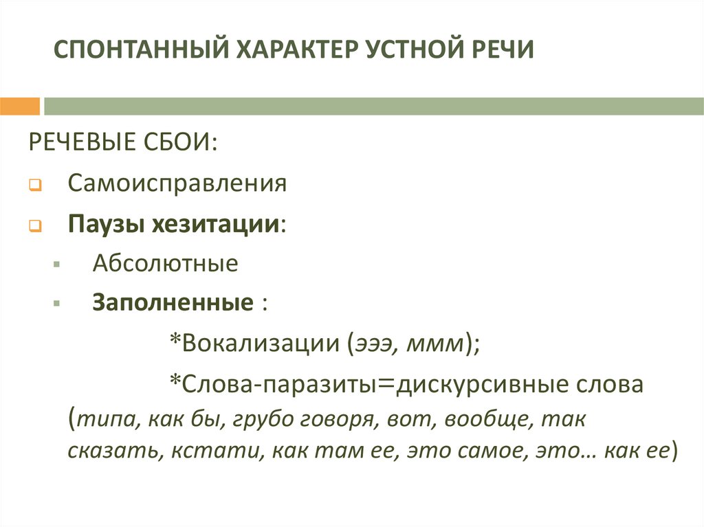 СПОНТАННЫЙ ХАРАКТЕР УСТНОЙ РЕЧИРЕЧЕВЫЕ СБОИ: