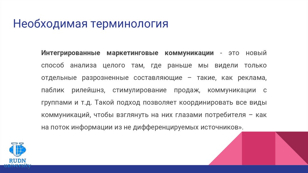 Необходимая терминологияИнтегрированные маркетинговые коммуникации - это новый