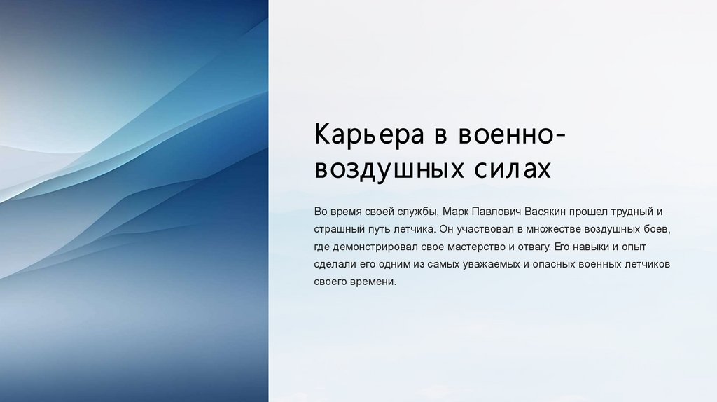 Карь ера в военновоздушных сил ахВо время своей службы, Марк Павлович Васякин прошел трудный и