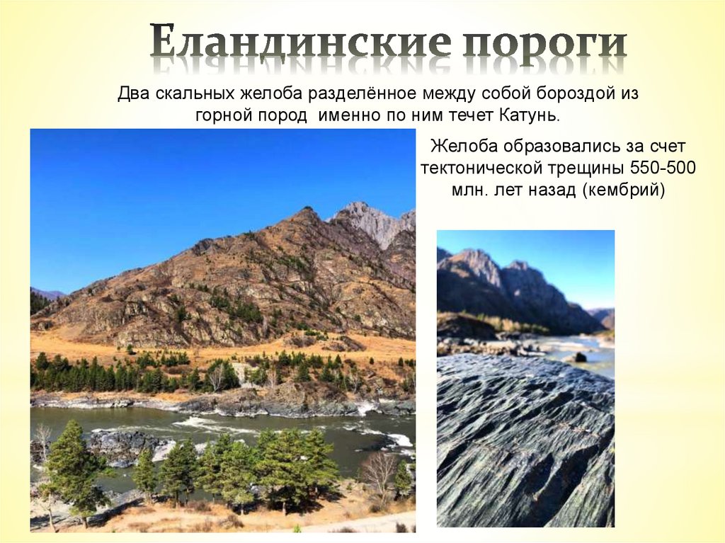 Два скальных желоба разделённое между собой бороздой изгорной пород именно по ним течет Катунь.