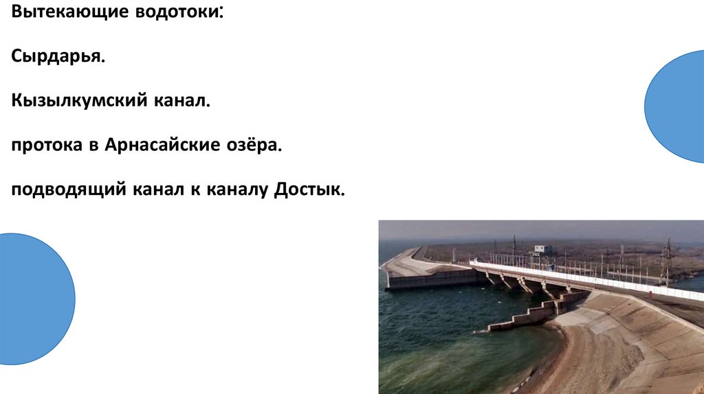 Вытекающие водотоки:Сырдарья.