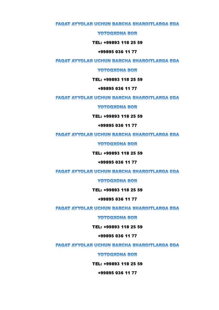 FAQAT AYYOLAR UCHUN BARCHA SHAROITLARGA EGA