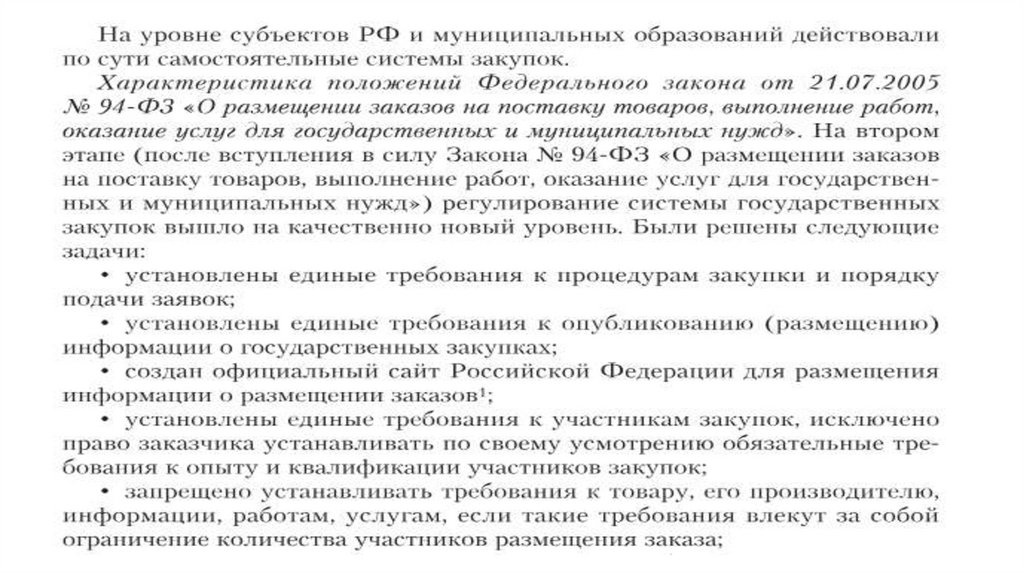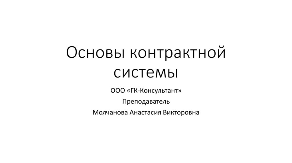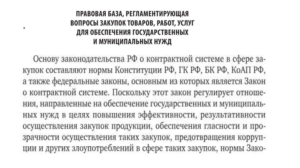 Правовые основы контрактной системы. Законодательство Российской Федерации о контрактной системе