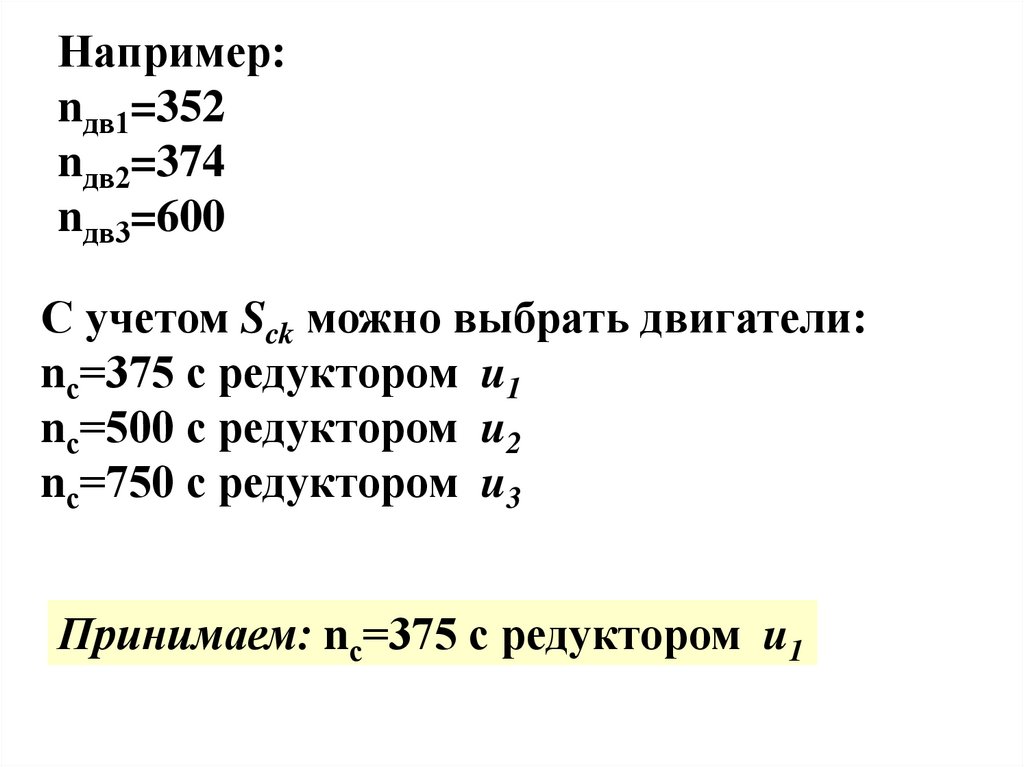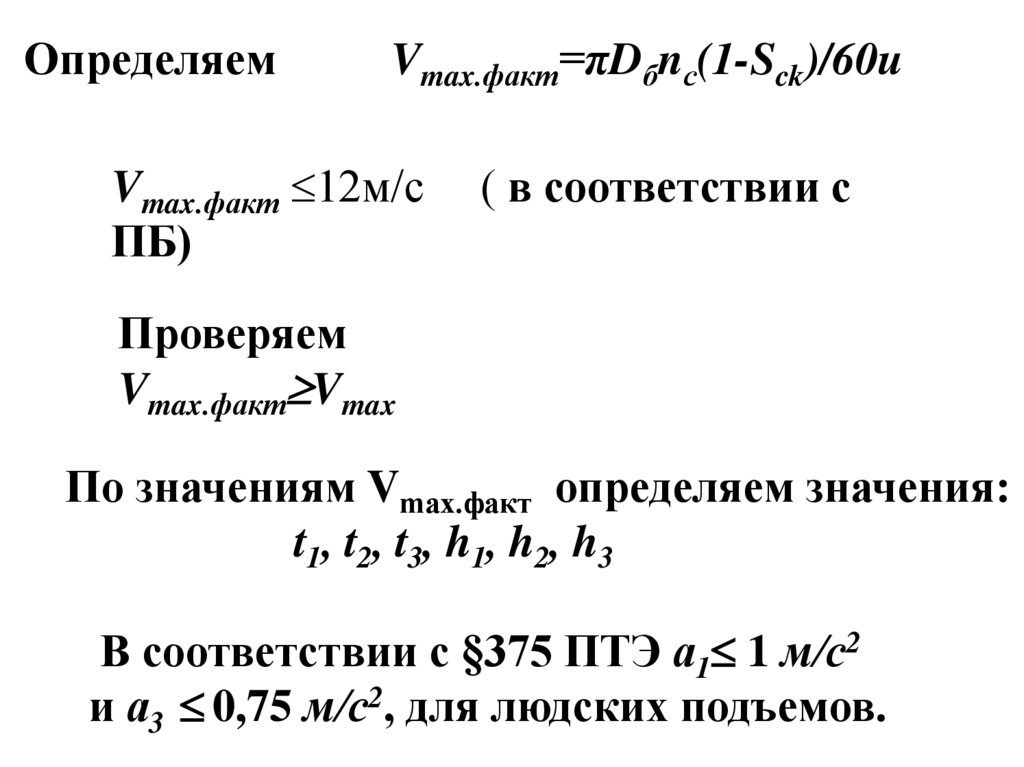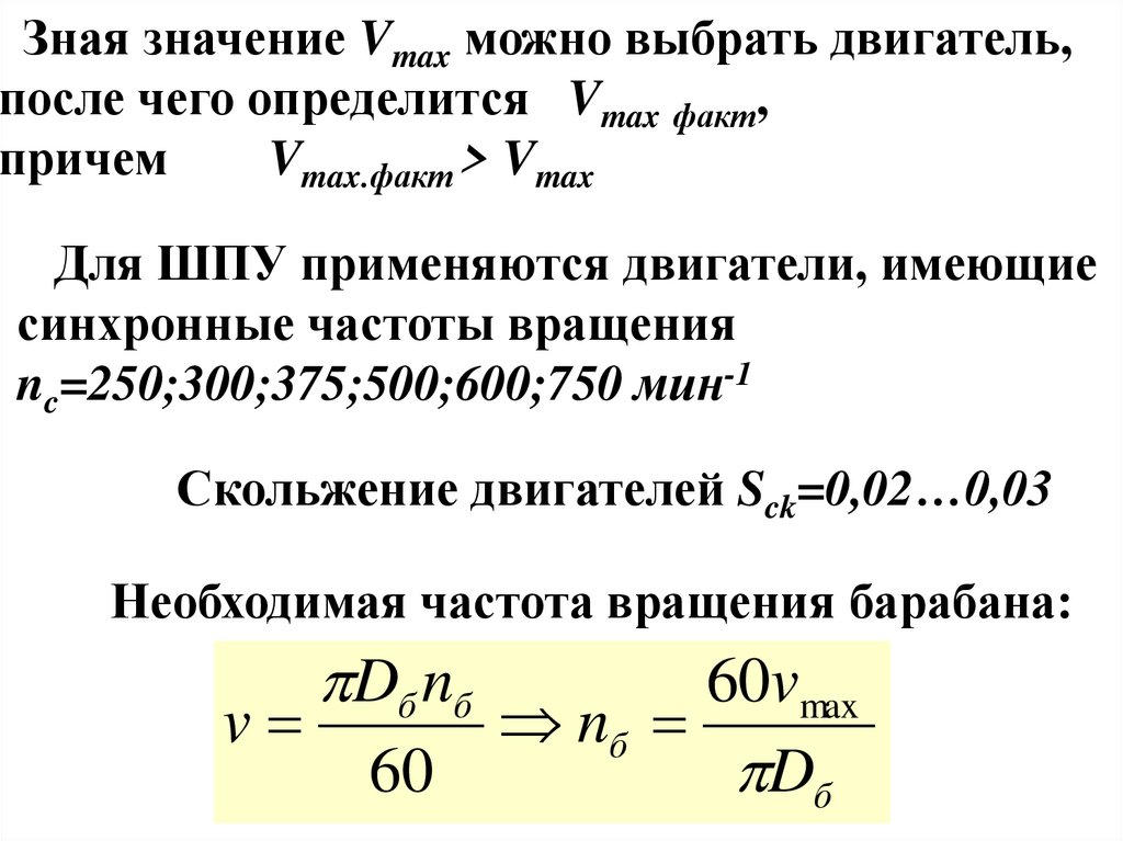 Зная значение Vmax можно выбрать двигатель,после чего определится Vmax факт,