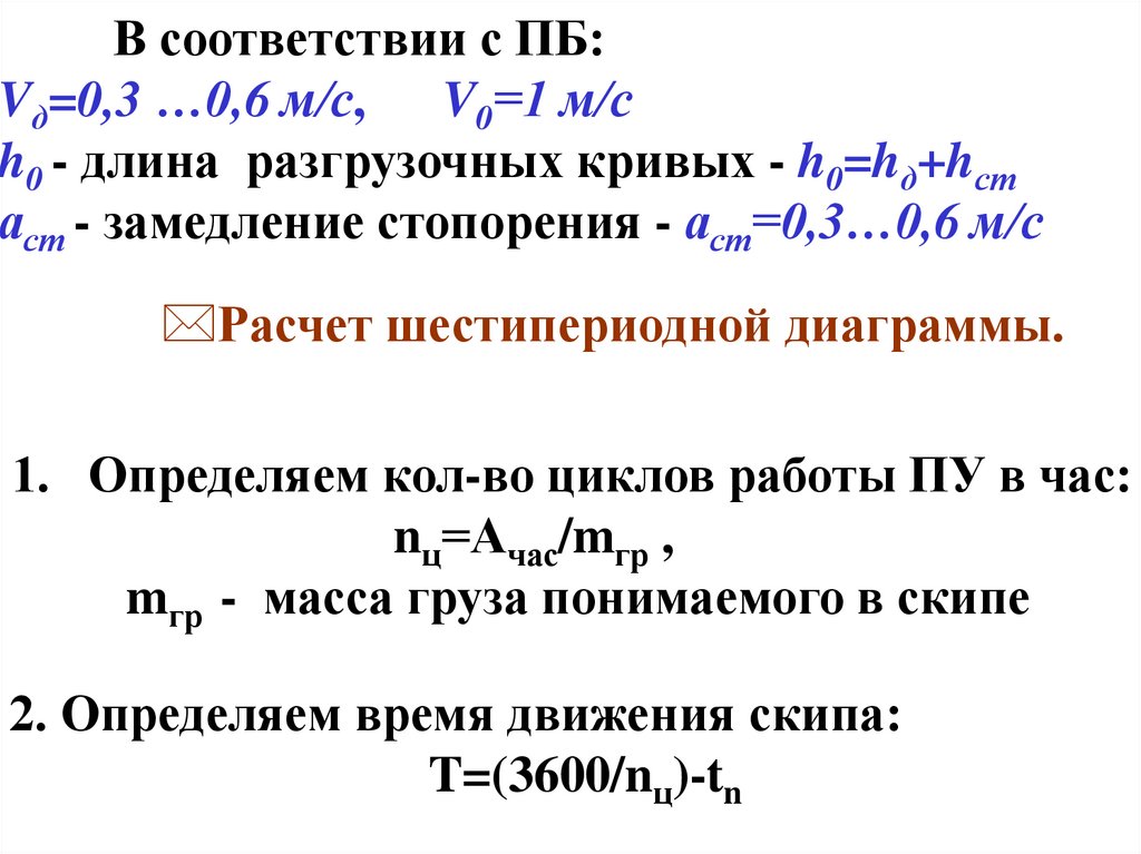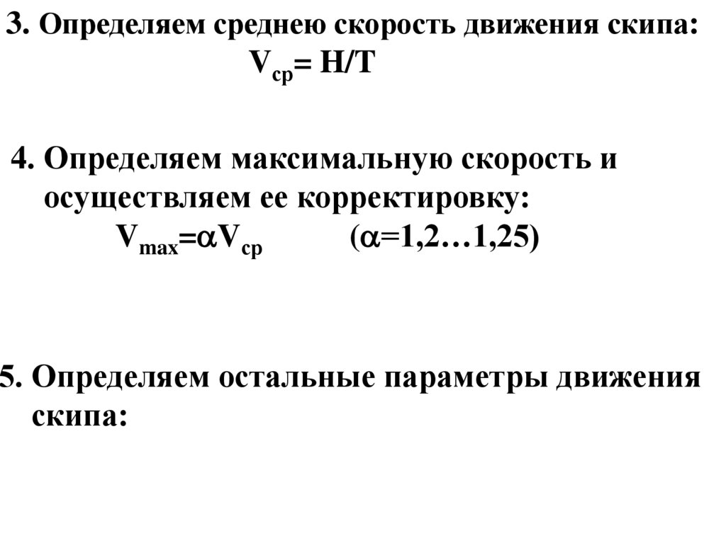 3. Определяем среднею скорость движения скипа:Vcр= H/T