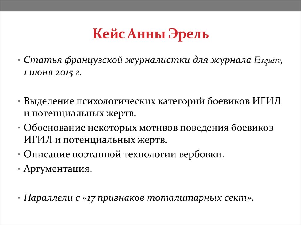 Кейс Анны Эрель• Статья французской журналистки для журнала Esquire,