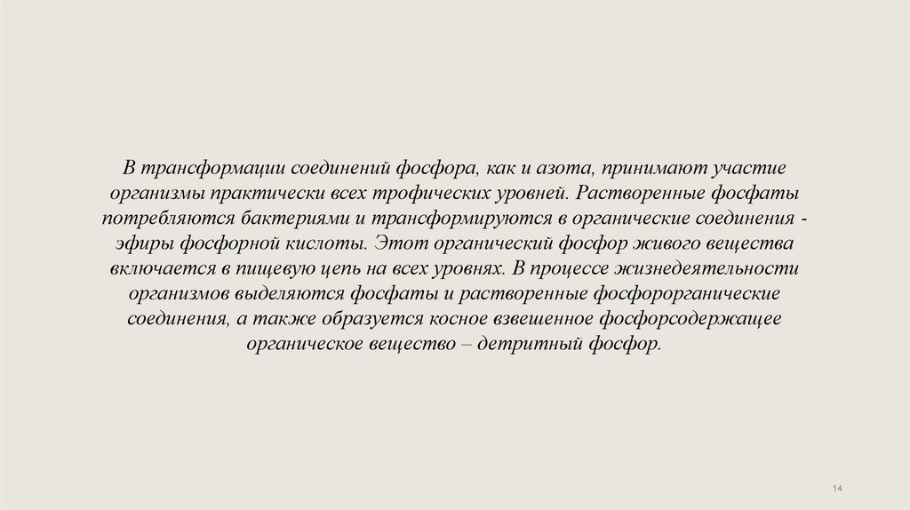 потребляются бактериями и трансформируются в органические соединения эфиры фосфорной кислоты. Этот органический фосфор живого вещества