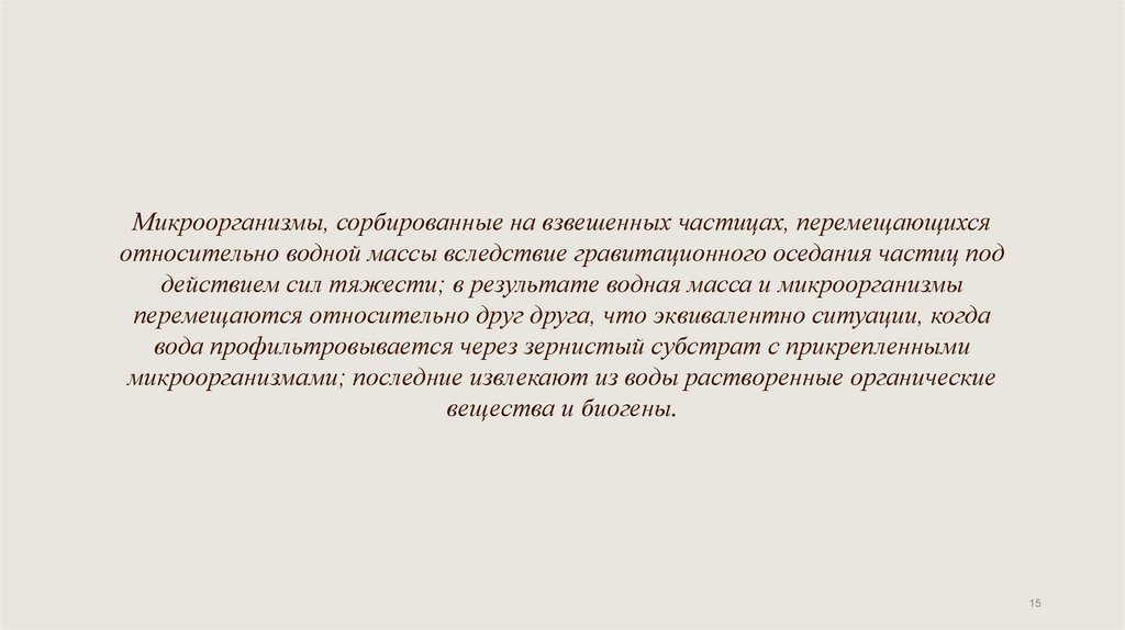 Микроорганизмы, сорбированные на взвешенных частицах, перемещающихсяотносительно водной массы вследствие гравитационного оседания частиц под