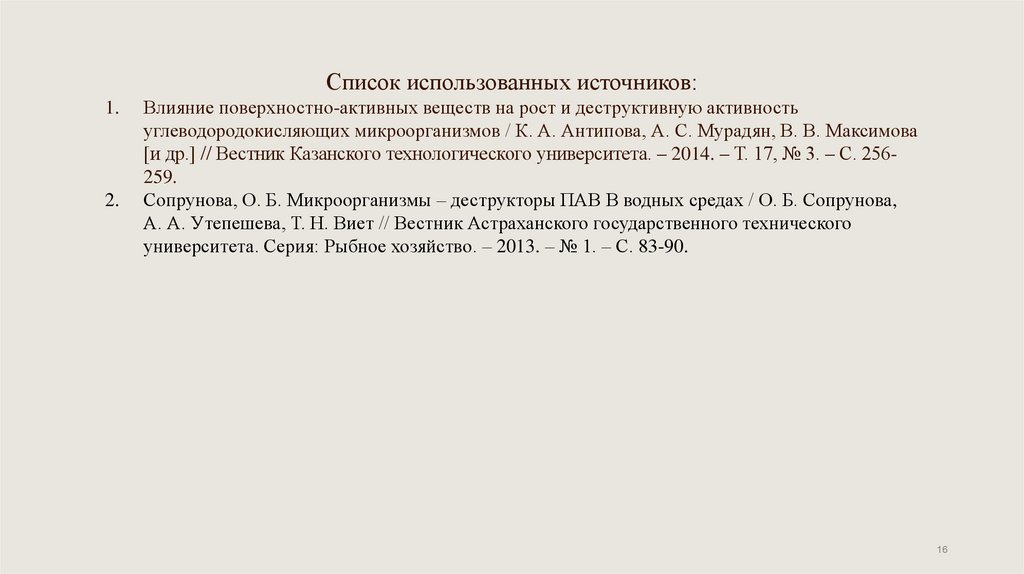 Сопрунова, О. Б. Микроорганизмы – деструкторы ПАВ В водных средах / О. Б. Сопрунова,