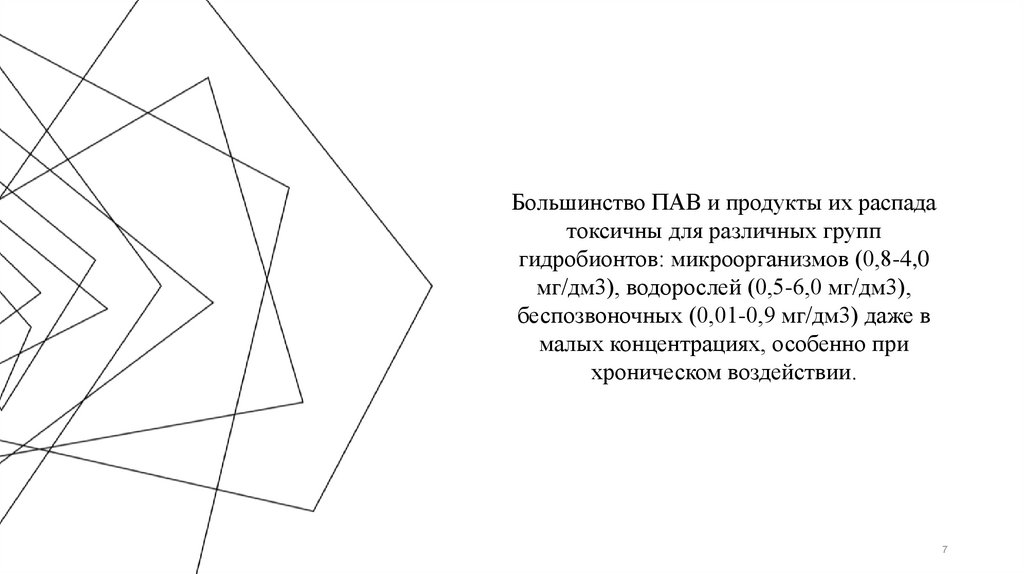 Большинство ПАВ и продукты их распадатоксичны для различных групп