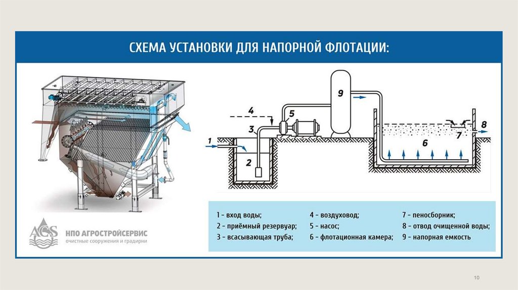 действием сил тяжести; в результате водная масса и микроорганизмы
