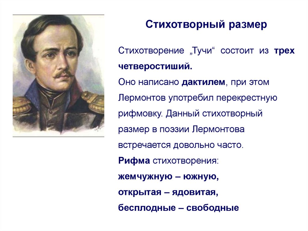 Стихотворный размерСтихотворение „Тучи“ состоит из трех