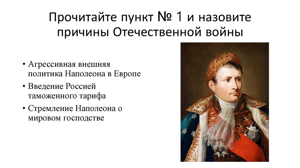 Прочитайте пункт № 1 и назовитепричины Отечественной войны