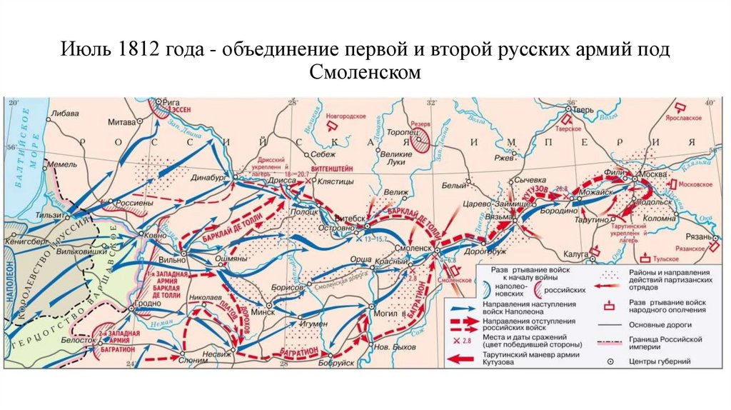 Июль 1812 года - объединение первой и второй русских армий подСмоленском