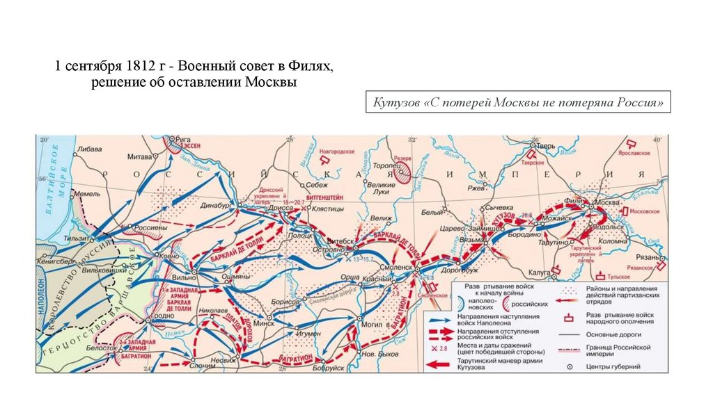 1 сентября 1812 г - Военный совет в Филях,решение об оставлении Москвы