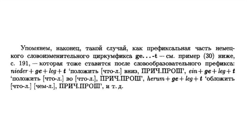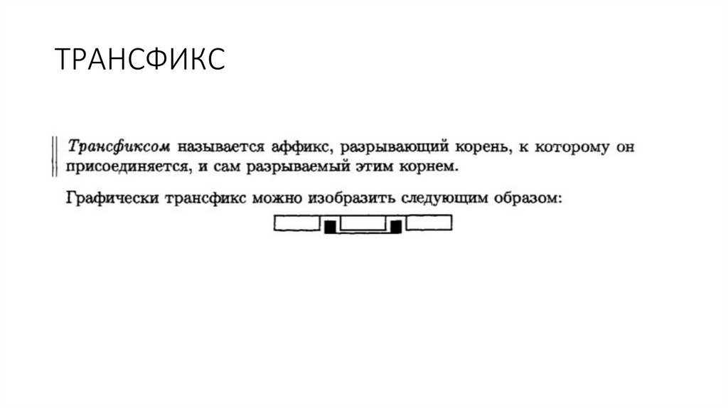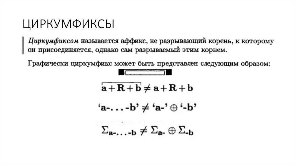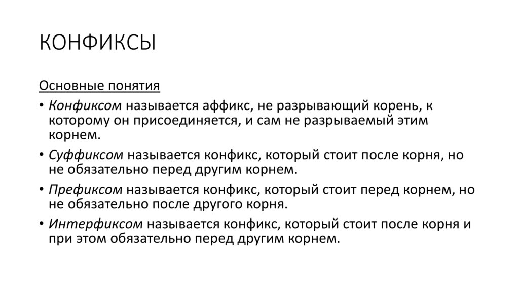 • Конфиксом называется аффикс, не разрывающий корень, к