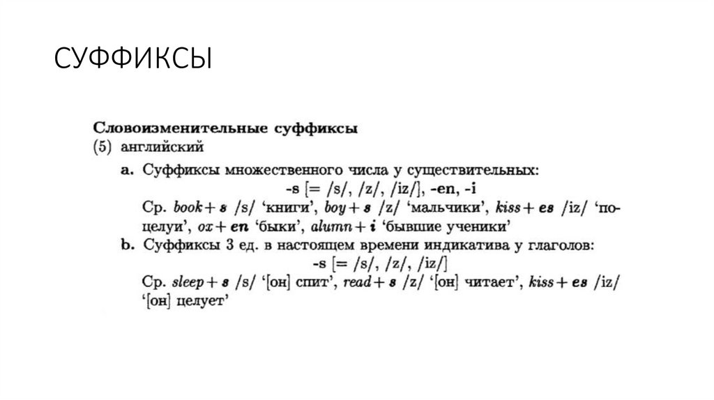 ЛЕКСИЧЕСКИЕ СУФФИКСЫпримеров нет, текста тоже